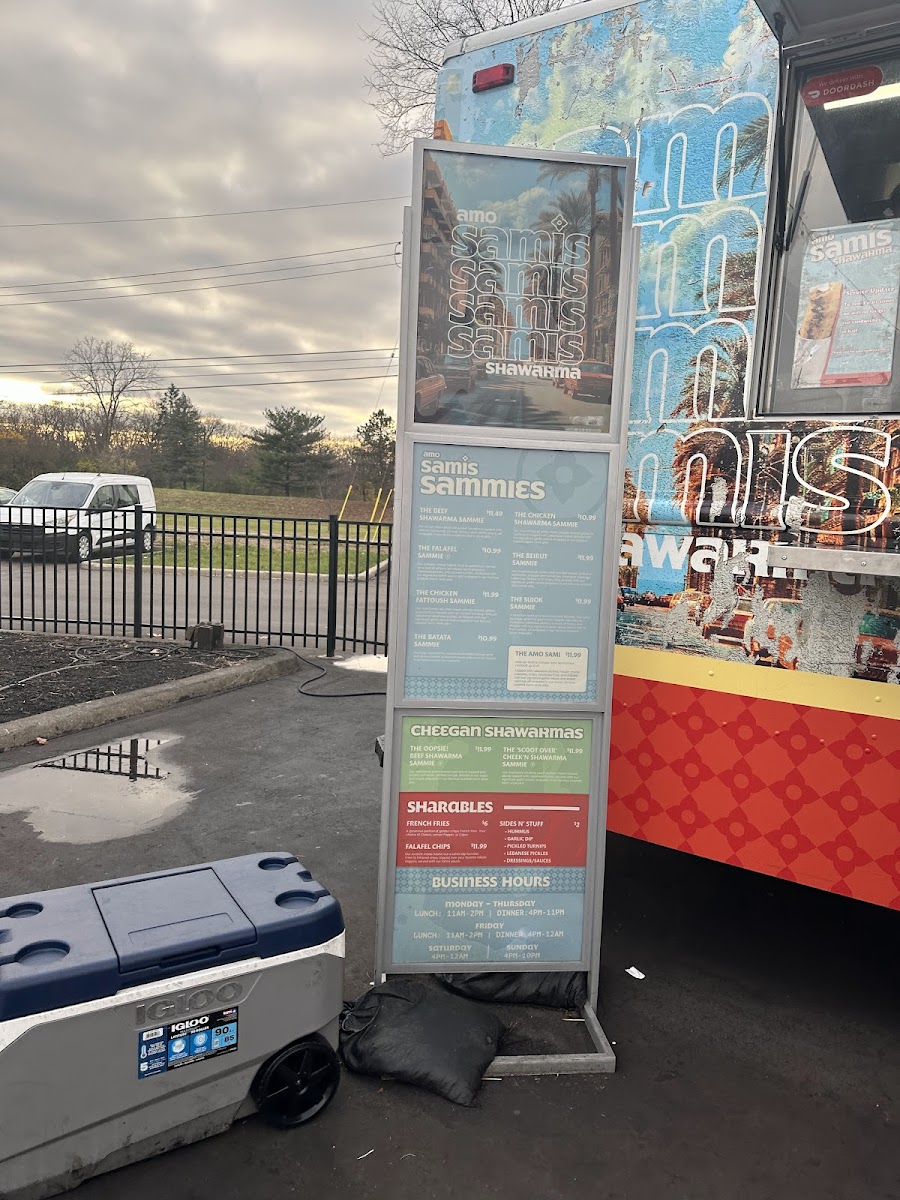 Among the highlights are dishes like Chicken Shawarma, delicate NAMI Sushi, crispy Wing Ding and Fries, and rich Lava Cake for those craving a sweet finish. The menu features a mix of food truck specialties and indoor offerings, allowing guests to explore flavors such as savory tacos, fresh fish and chips, and shareable pastas.